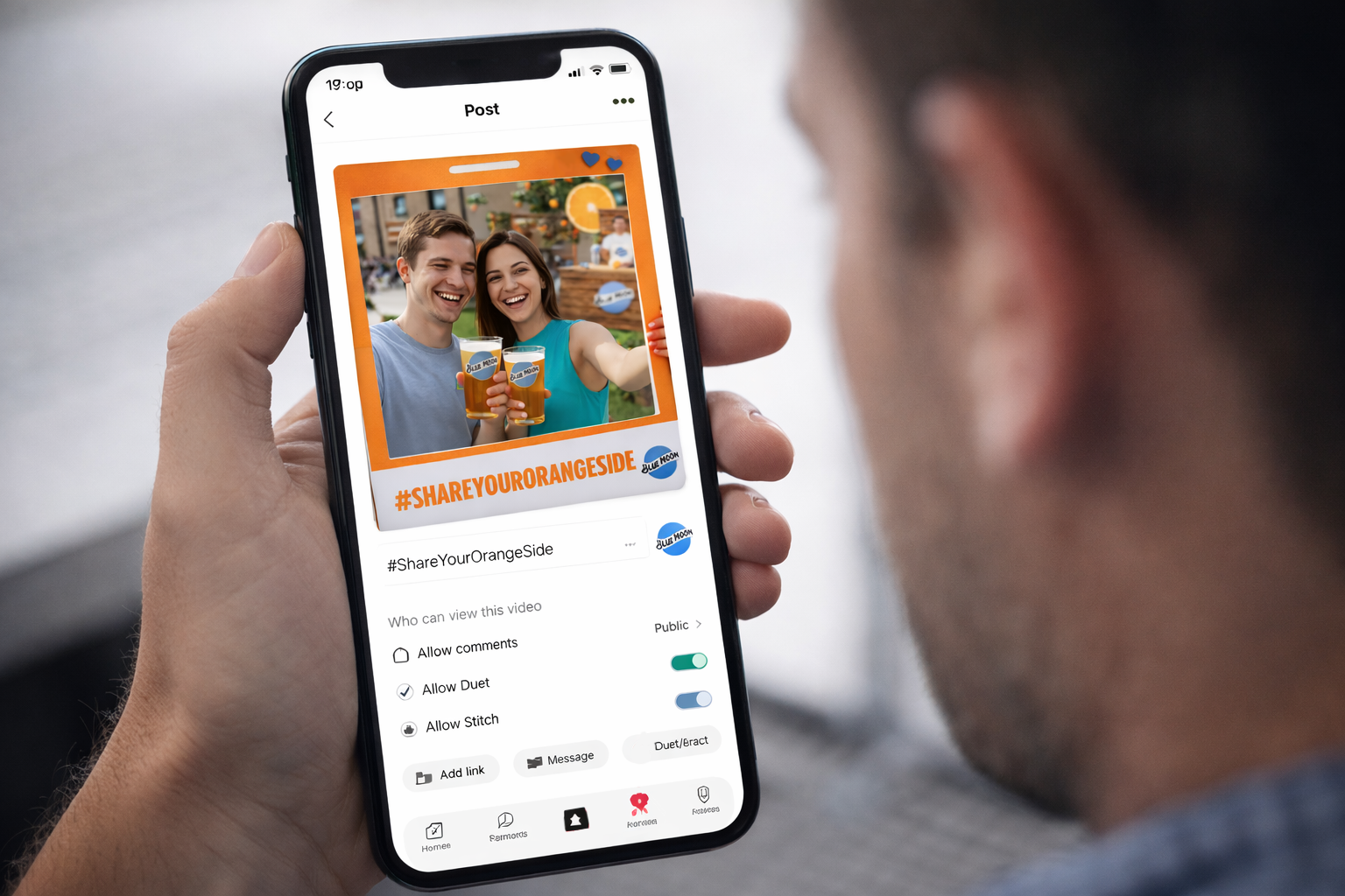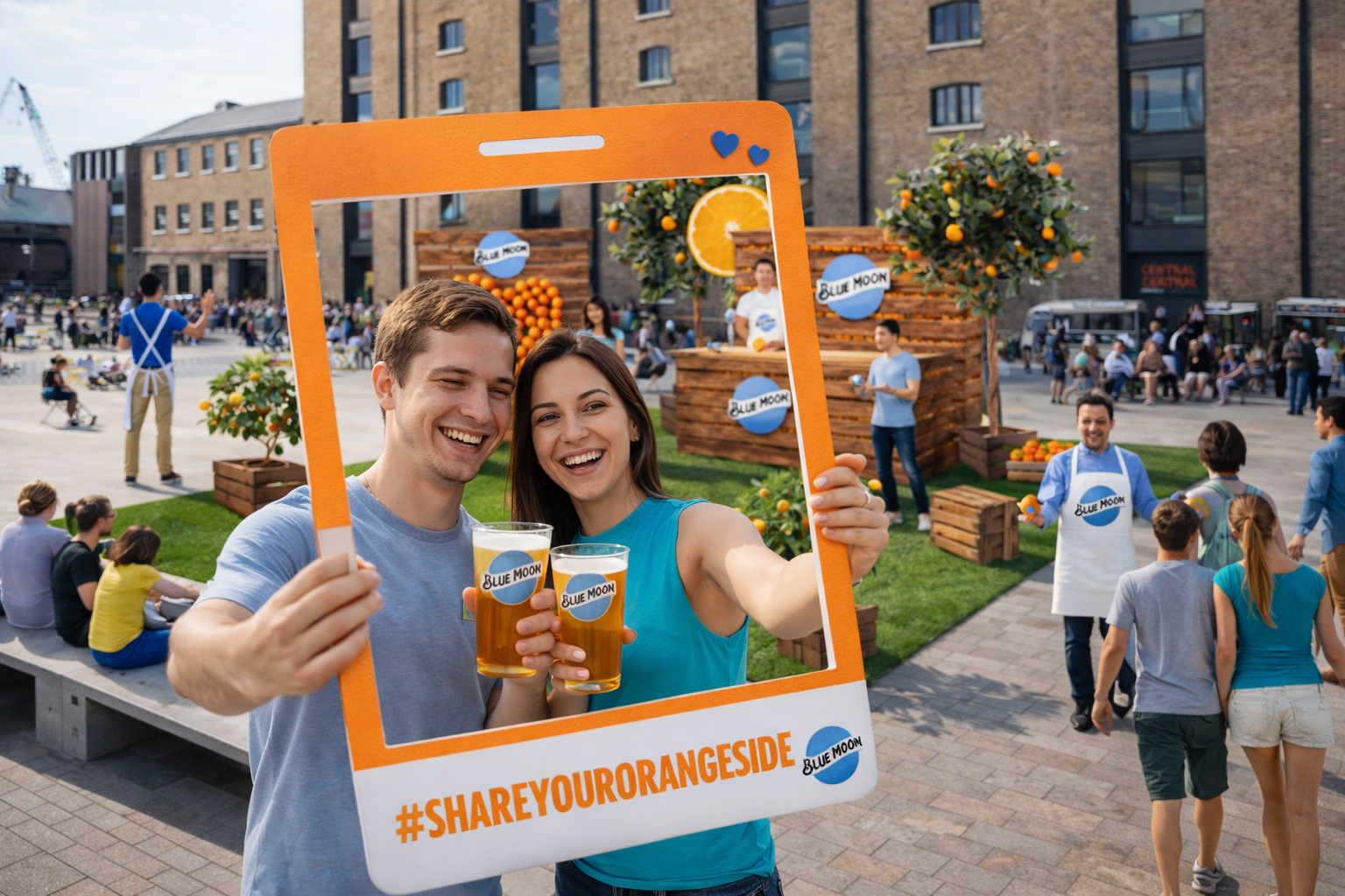 A bold, Instagram-style photo frame with the hashtag #ShareYourOrangeSide acted as the hero interaction, encouraging visitors to capture and share their moment with a Blue Moon. By turning consumers into content creators, the campaign extended far beyond the physical space, blending live experience with organic social reach.
