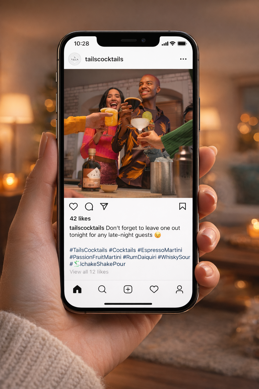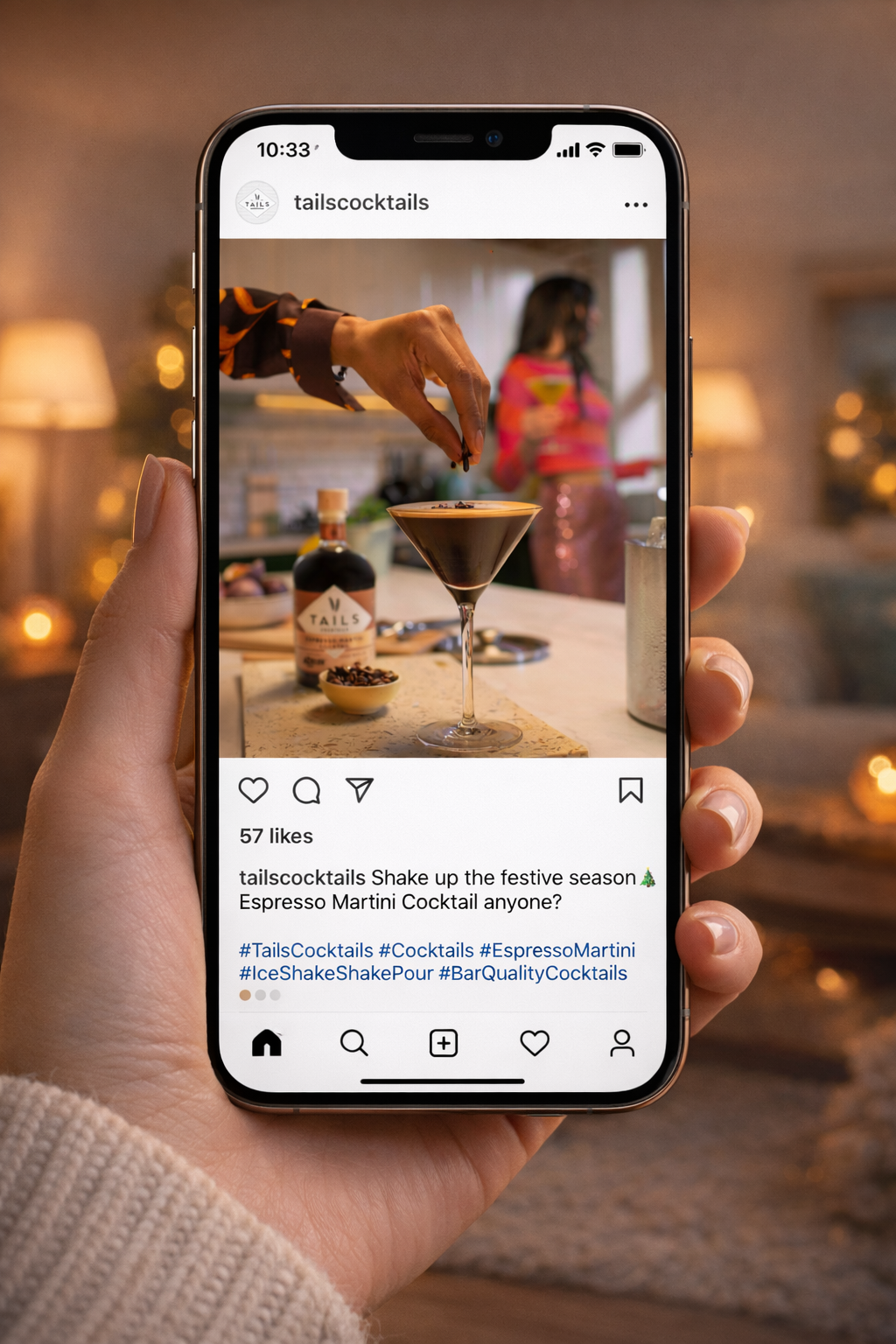 A series of playful, scroll-stopping Instagram posts designed to hero Tails Cocktails’ ready-to-serve range. Bold visuals and light-hearted storytelling brought the brand’s fun, approachable personality to life—driving engagement while inspiring easy, at-home cocktail moments.