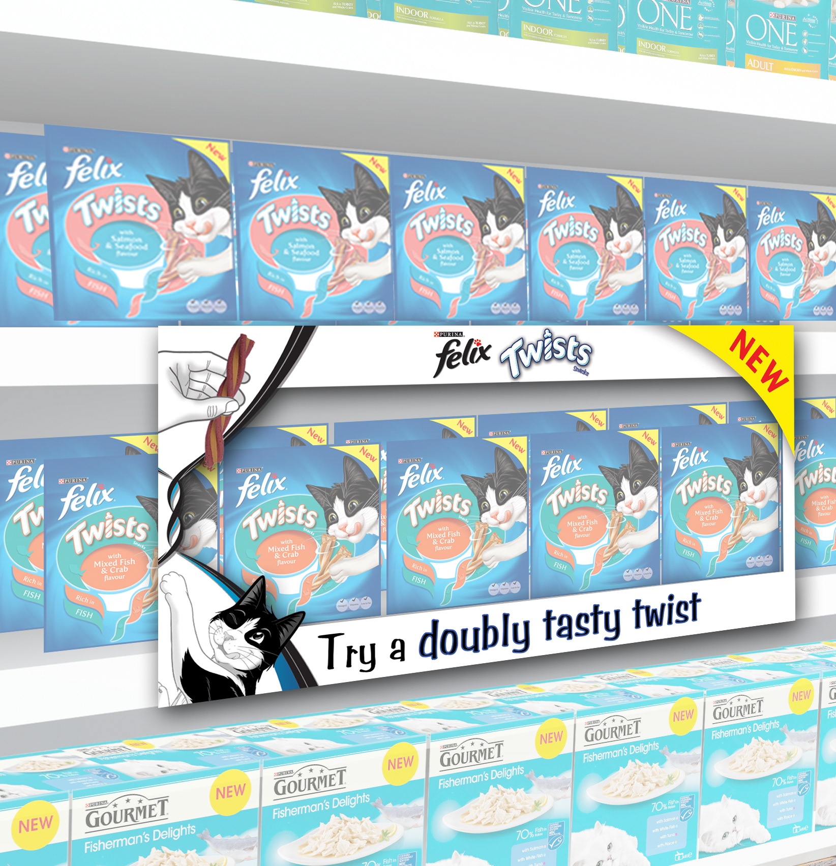 Developed an in-store campaign for Felix Twists with the strapline “Double the fun with a playful twist”. The touchpoints brought the brand’s playful personality to life, creating an engaging and memorable shopping experience that encouraged interaction and trial.