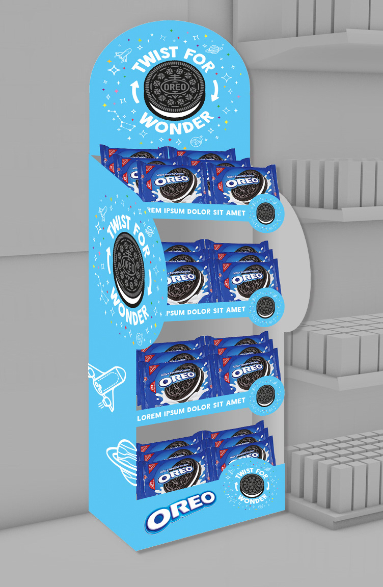 Designed a playful and engaging Oreo in-store display to attract shoppers and encourage interaction. The display highlighted the brand’s fun, whimsical personality, creating a memorable visual moment that stood out on shelf and drove product engagement.