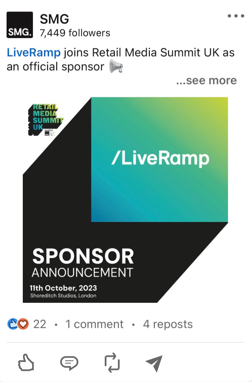 Developed a bold, flexible identity for the Retail Media Summit UK, ensuring consistency across event collateral, digital platforms, and social media. Designed to evolve annually while maintaining strong brand recognition, the logo and visual system have been successfully adapted for multiple editions, establishing a cohesive and enduring event brand.