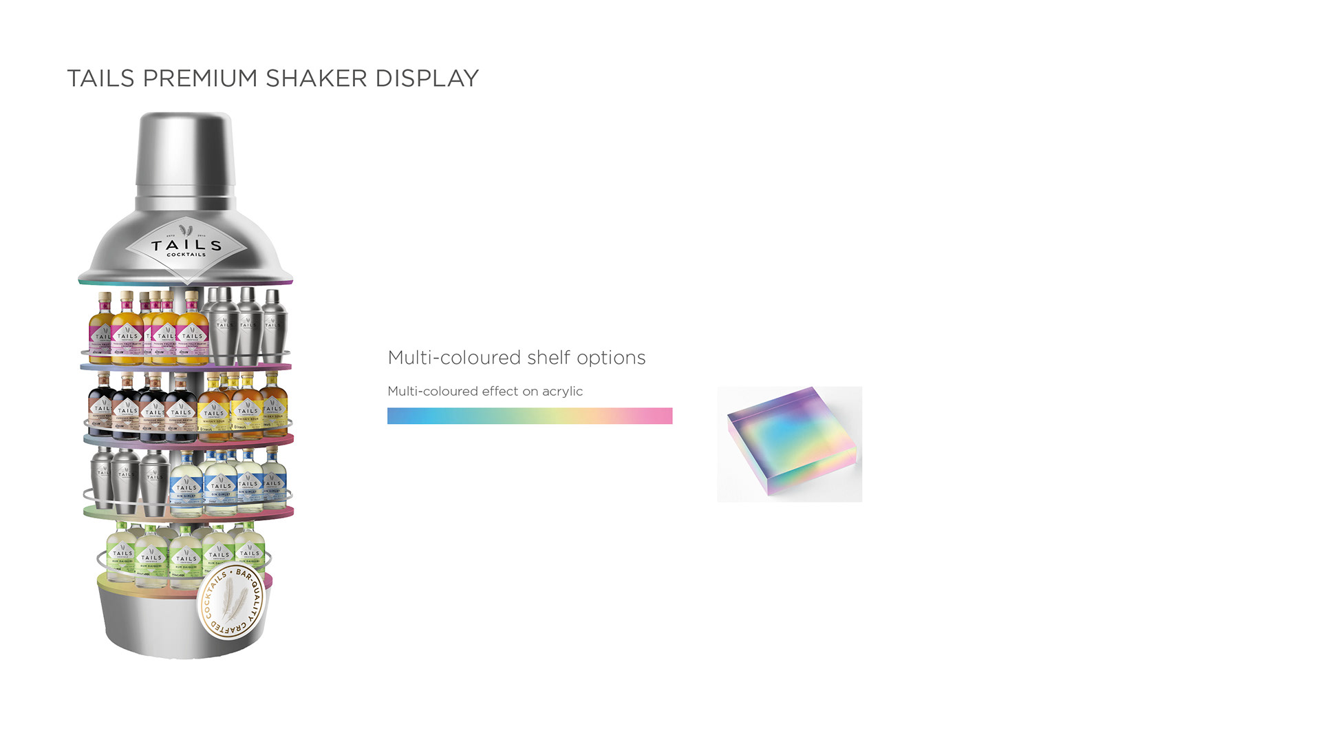 Created in-store displays and bespoke free-standing units for Tails Cocktails, designed to playfully amplify the cocktail-serving experience. The installations incorporated a warm, homely feel to show consumers that professional-quality cocktails can be effortlessly enjoyed at home, bringing a sense of comfort and creativity into the retail space.