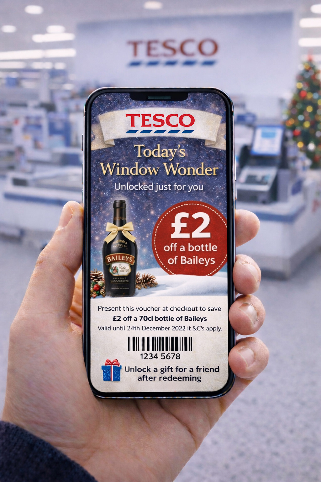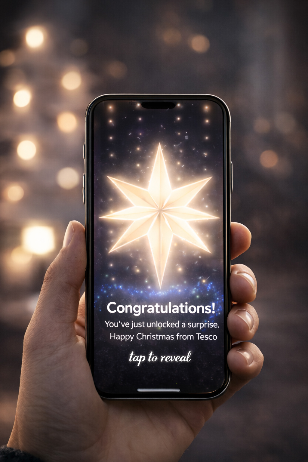 A interactive Advent window that brings the storefront to life through WebAR. Shoppers simply scan a QR code and hold up their phone to reveal glowing objects in the window, each unlocking a daily festive surprise — from exclusive coupons and recipe ideas to stocking-filler inspiration. With a new reveal every day, the window becomes a living Advent calendar that rewards curiosity and encourages repeat visits throughout December.